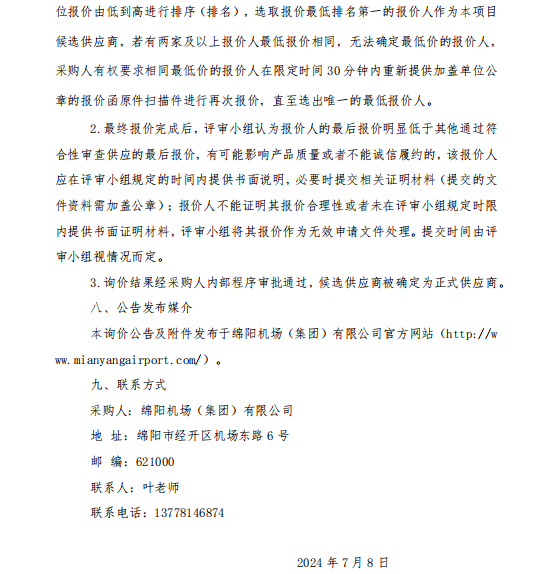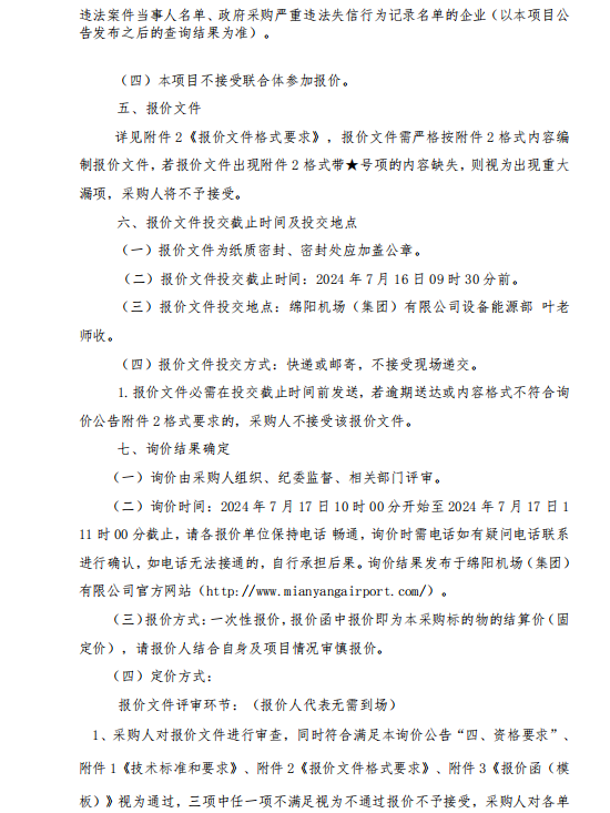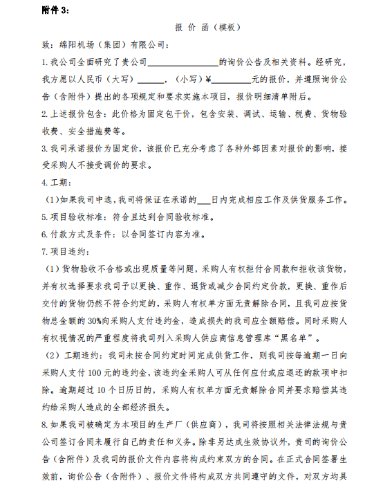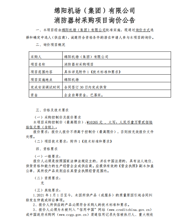 綿陽機場(集團)有限公司 消防器材采購項目詢價公告
